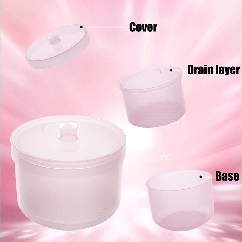【Material】Washing bowl is made of high quality PE plastic material, not easy to damage and durable.【Unique Design】The nail tool cleaning bowl has many holes in the inner layer, which can be used to jam the drill bit of the nail machine, which is convenient for cleaning.【Easy to Use】Pour the cleaner into the cleaning box, then close the lid and the tool will be soaked and cleaned. The card slot can also filter the dirt on the nail polish head head.【Perfect Size】The size of the washing bowl is about 8.5*8.15cm/3.35*3.2inch.【Widely Use】This manicure tool cleaning bowl is used to clean manicure tools such as nail drills, jewelry, nail clippers, eyelash tweezers, etc.