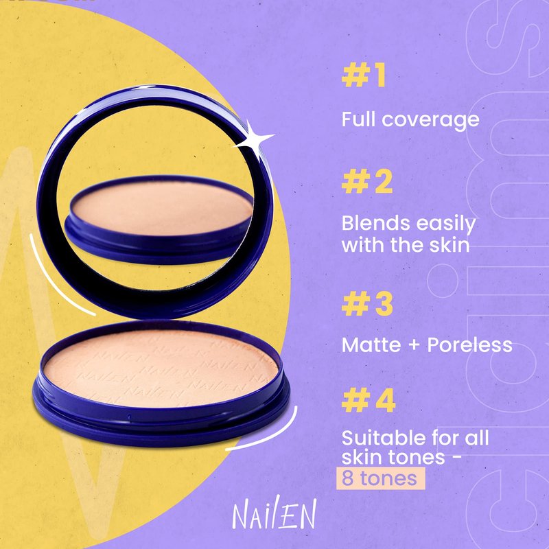 Nailen Compact Makeup Setting Powder with Matte Finish, Shine Control, Full Coverage - Ideal for All Skin Types & Poreless Smooth Look - Tone 2, (1 Count)