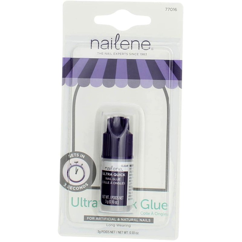 - THE ULTIMATE NAIL GLUE: Durable and fast setting, Nailene's Ultra Quick is the ultimate nail glue for all your natural and artificial nail needs. Nailene Ultra Quick Nail Glue sets in 3 seconds to instantly bond full nails, sculptured nails and tips and wraps. This glue is also gentle enough for natural nail repairs.