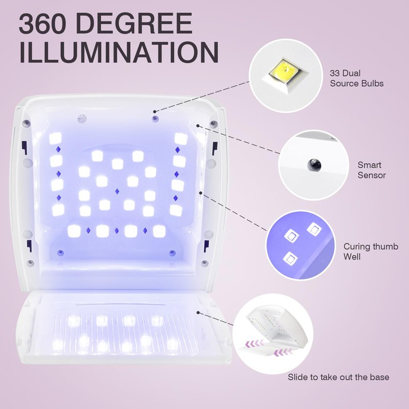 - 【UV Light with Detachable Base】The base ensures effortless cleaning, promoting a hygienic environment for flawless nail applications. Maintain a professional workspace with convenience.