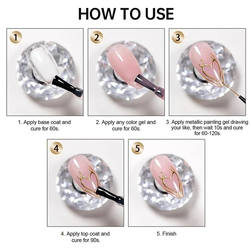 - 【Widely Use NAIL ART GEL】This 3d metallic silver nail art gel polish can be used to create various nail art designs, such as nail patterns drawing, chrome nail art, 3D nail charms, French tip painting, and so on. Or you can choose to the single color manicure with this liner painted gel. You can create any fantastic nail art and patterns as you like!