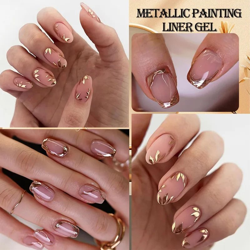 NAILKISS Gold Metallic Painting Gel Mirror Painted Gel Polish 3D Metal Painting Gel Drawing Mirror Chrome Gel Polish Glossy Soak Off DIY Nail Art Manicure