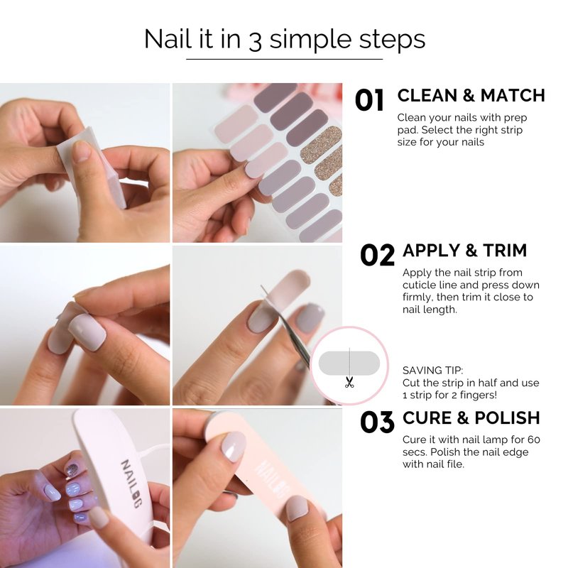 - 【EASY TO APPLY】With an easy & fast application method, you can get a perfect nail look in minutes! - Nailog semi cured nail stickers are suitable for both manicurists and beginners, so you need not hesitate, even if you have never had a manicure.
