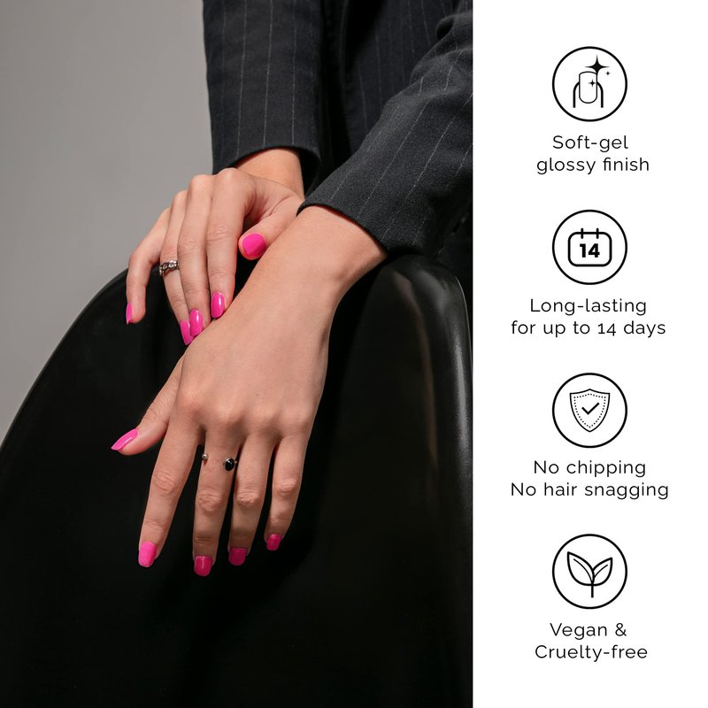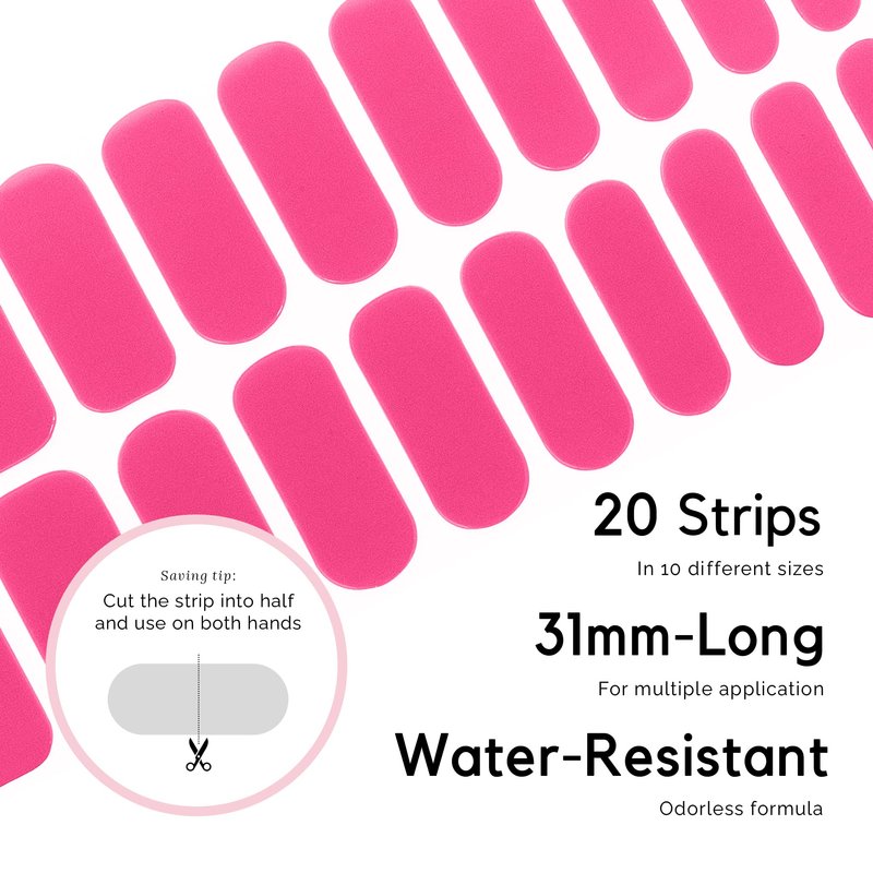 NAILOG Semi Cured Gel Nail Strips│20pcs Extra Long Nail Polish Strips│Nail Stickers with Glossy Gel Finishing│Pink Bomb