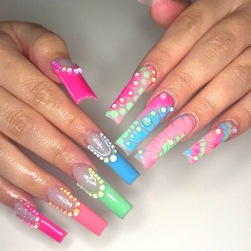 - ★Easy To Use & Portable: Symphony Manicure Mermaid Glass Bead 3d nail art charms set for acrylic nails are equipped with boxes, which make it not easy to confuse, very lightweight, and easy to store and carry, portable enough for traveling and performing. Built-in flat backs can be easily applied to natural and artificial nails: Clean the surface of your nails, brush the base polish, and place it onto nails with glue.