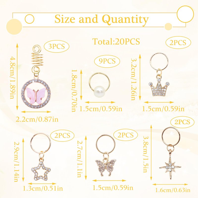 - 💎High Quality Material:20PCS gold crystal rhinestone hair jewelry for braid charms are made of alloy with plated technique, that light weight and not easy to be broken or faded.Our beautiful butterfly braid accessories can bring you a variety of wearing experiences and make you look more eye-catching in the crowds.