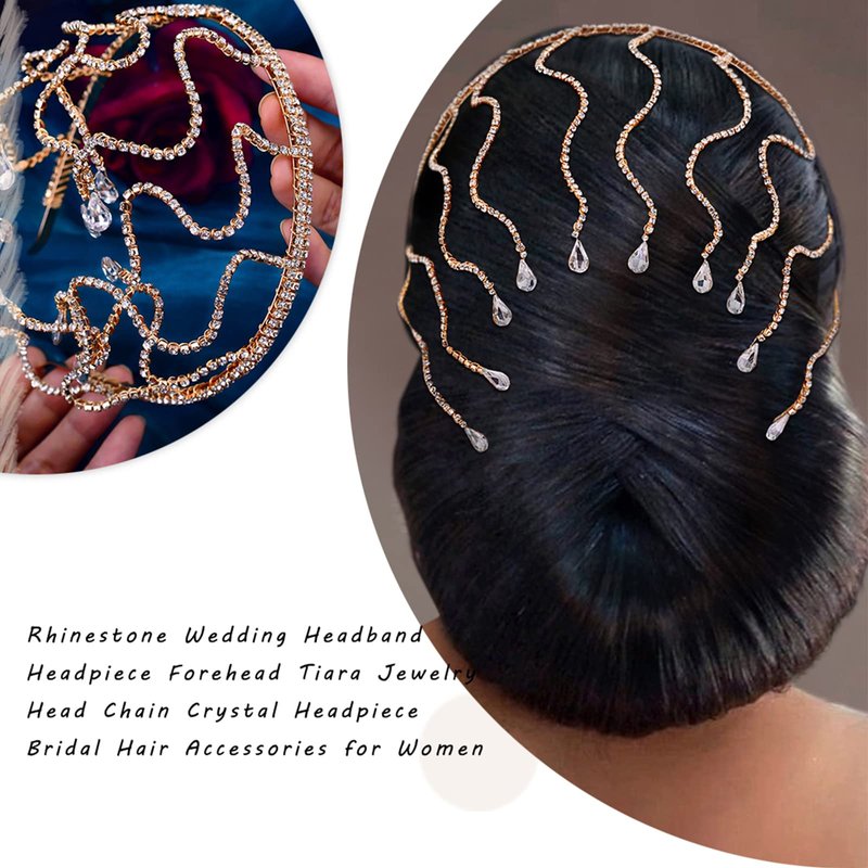 Fashion Gold Crystal Rhinestone Headpieces Wedding Accessories Rhinestones Hair Clips Bridal Forehead Tiara Trends Ensure your good shopping experience.