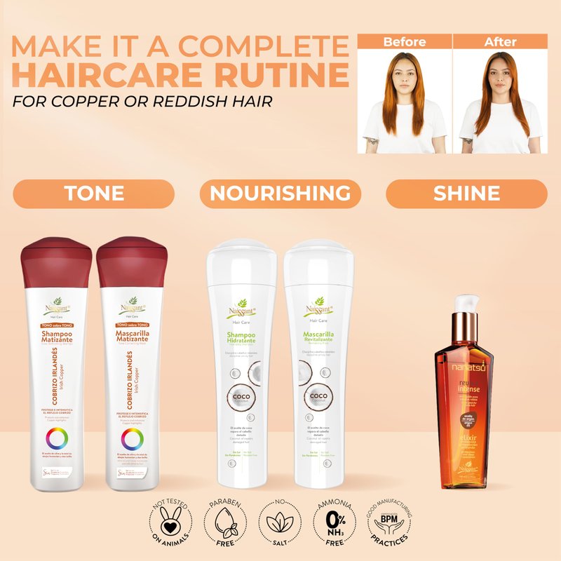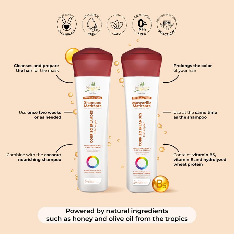 naissant Irish Copper Hair Toning Shampoo | Color Depositing | Refresh & Neutralize Brassy Tones | Paraben, Ammonia & Sulfate Free | Pro-Vitamin B5, Olive Oil & Honey (Cobrizo) 10.1 Fl Oz