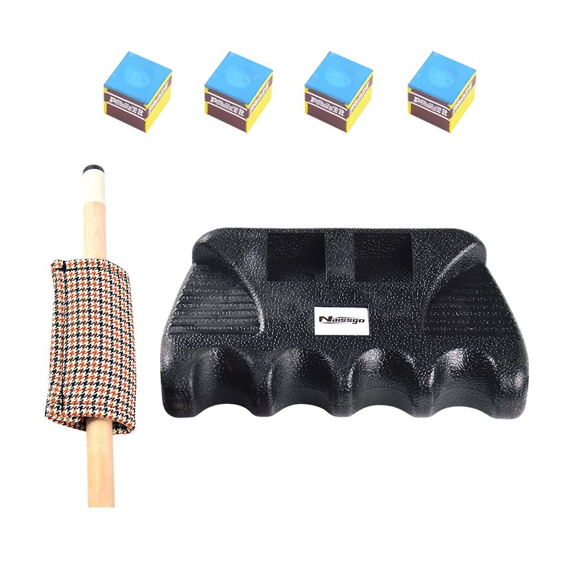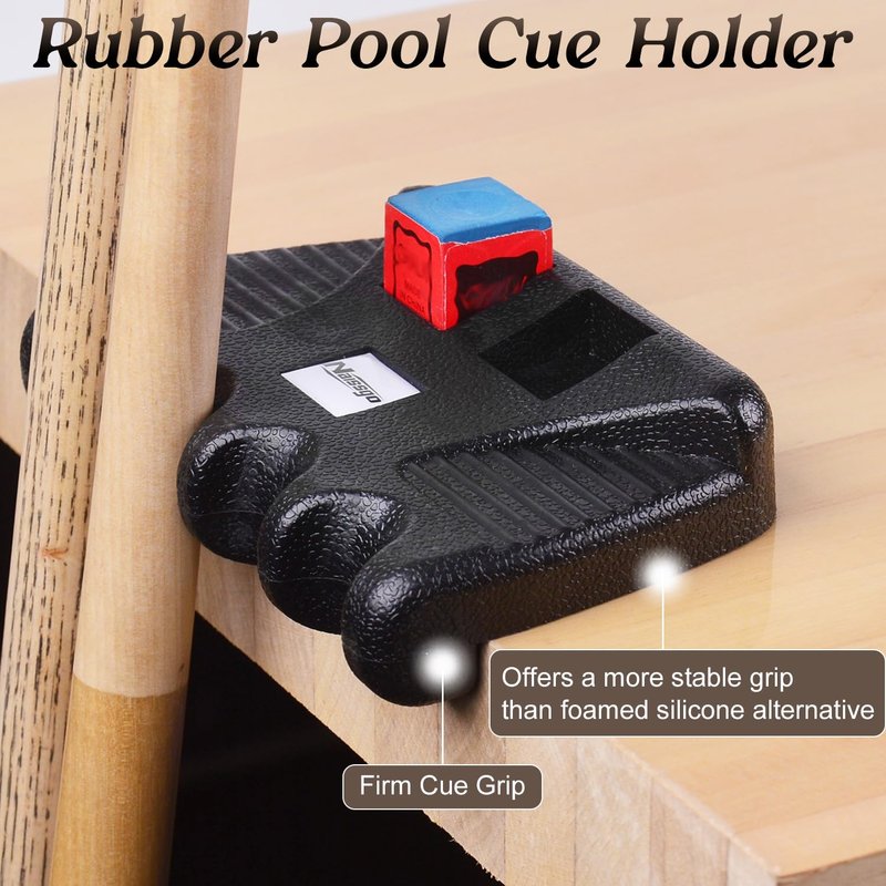 - Get the complete package with our pool cue holder, along with 4 chalk cubes and 1 pool stick cue shaft slicker cloth.