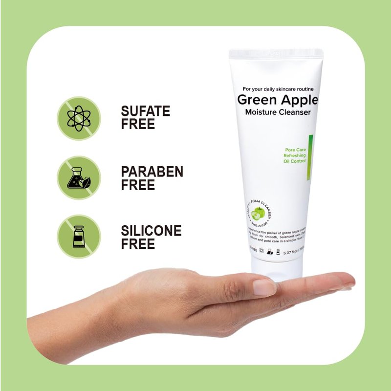 - FOAMING FACE CLEANSER: The Green Apple Moisture Cleanser contains vitamin A-rich green apple, which helps with oil control, pore care, and Refreshing.
