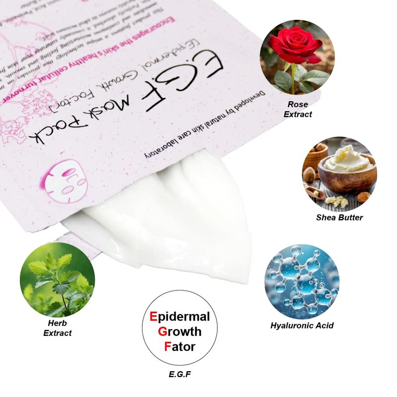 - The E.G.F sheet mask pack is pure 100% cotton and is used for facial skin care.
