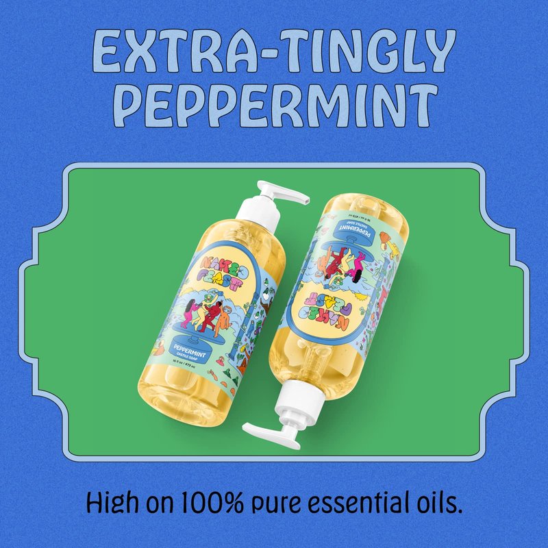 Naked Feast Peppermint Soap, Pure Castile Soap Liquid, Olive Oil Based, Organic, Vegan, Natural Bath Body Wash and Hand Soap Gel Cleaner - 16 oz