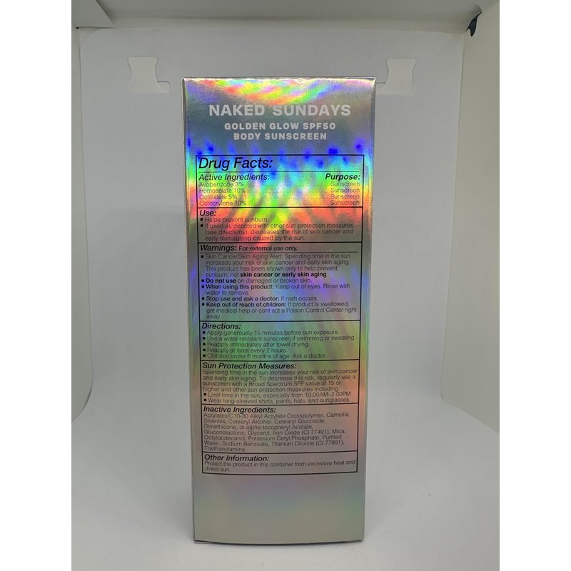 Naked Sundays SPF50 Golden Glow Body Sunscreen Broad Spectrum SPF 50 Sunscreen, Glowy, Shimmering, firming, non transfer SPF50 UVA/UVB Body Sunscreen
