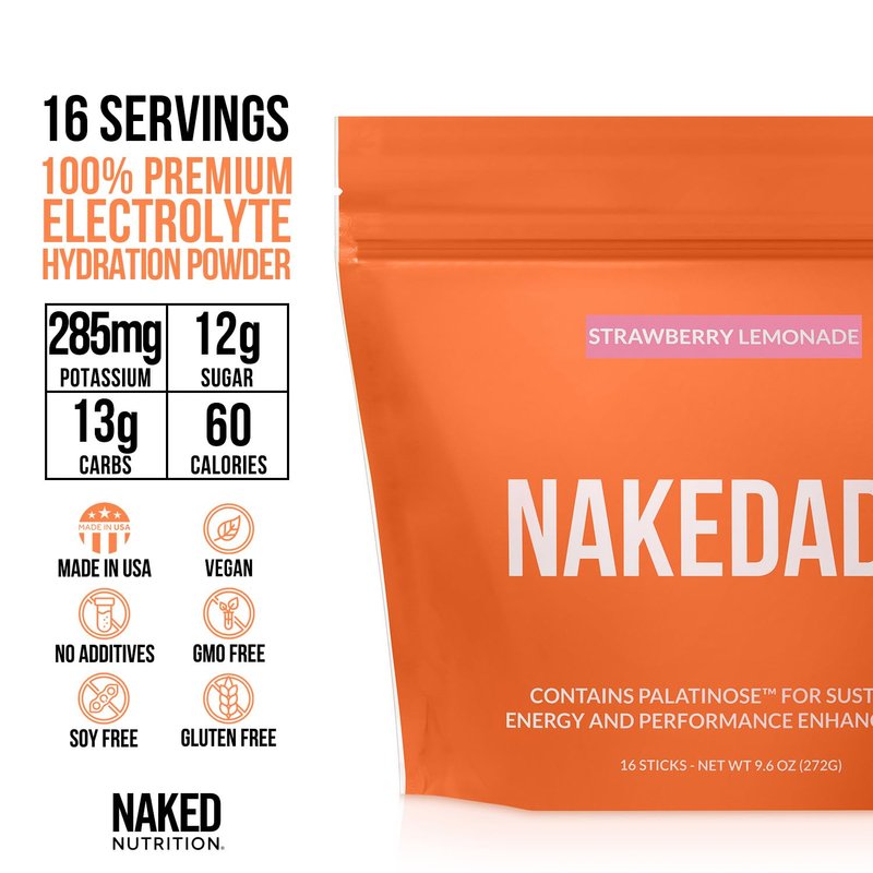 Nakedade – Performance Enhancing Sports Drink Powder - Strawberry Lemonade Electrolyte Powder – No GMOs or Artificial Sweeteners, Gluten-Free, Soy-Free, Dairy-Free – 16 Sticks