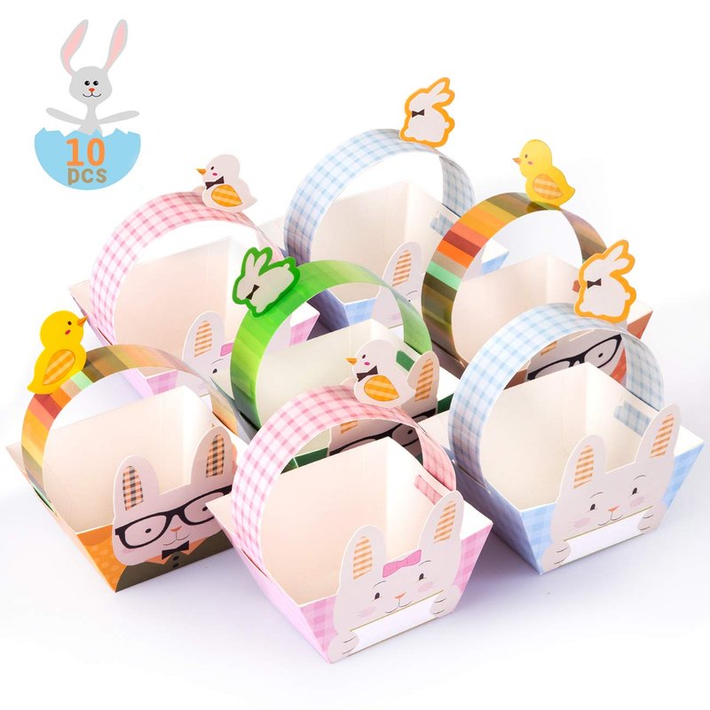 Naler 10 Pieces Mini Paper Easter Baskets DIY Bunny Baskets Gift Candy Treat Boxes with Handle for Easter Egg Hunt Party Supplies Easter Decoration