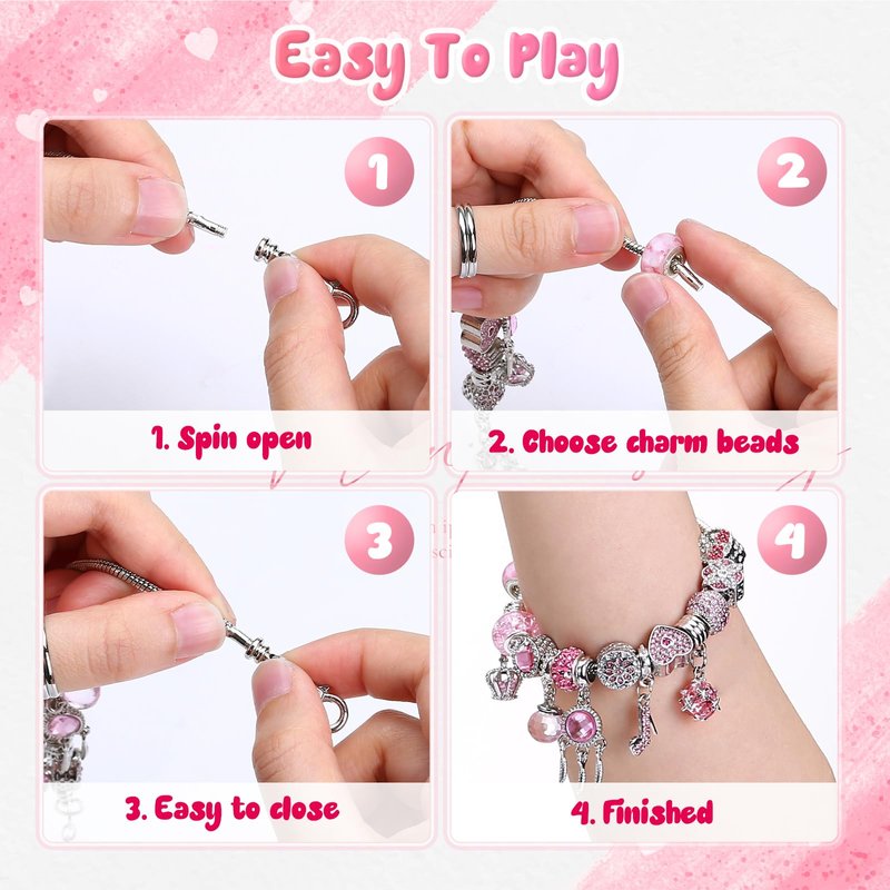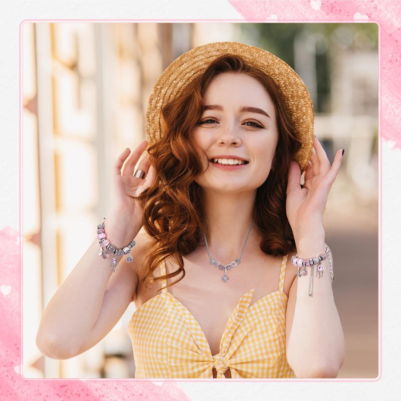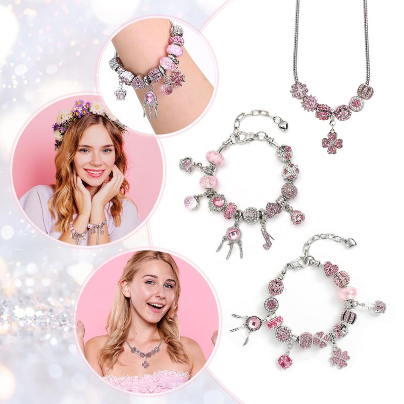 - 💟Charm bracelet making kit:22pcs charm beads, adjustable necklace and bracelet, total 24pcs plus one jewelry box and a hand bag