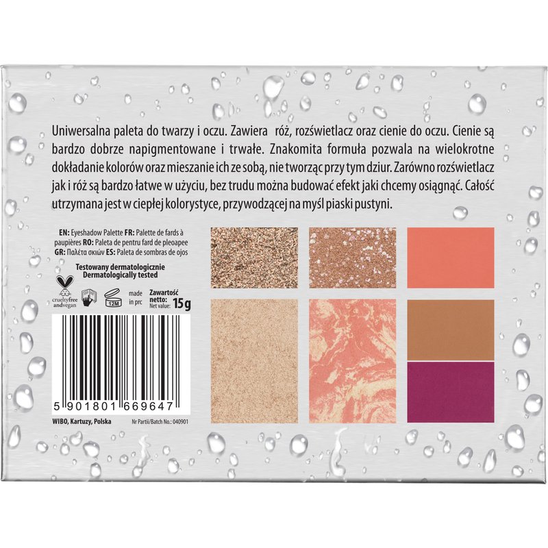A limited sun-kissed edition of vegan eye and face make-up products, a total of seven (7) stunning palettes in one zero waste magnetic case palette! A compact combination of five gorgeous shimmering and matte eye shadows, a blusher, and a highlighter for a summer make-up look in the desert sunshine! The high level of pigmentation and the easy-to-blend formula of the products create a professional sun-kissed make-up look that's simple and intuitive! NAM Makeup is proudly 100% VEGAN. Our products are CRUELTY-FREE and NEVER TESTED ON ANIMALS because we love animals. Our products are proudly paraben-free, formaldehyde-free, and microplastics-free. The paper used for the production of packaging is 100% recycled because we care about the environment.
