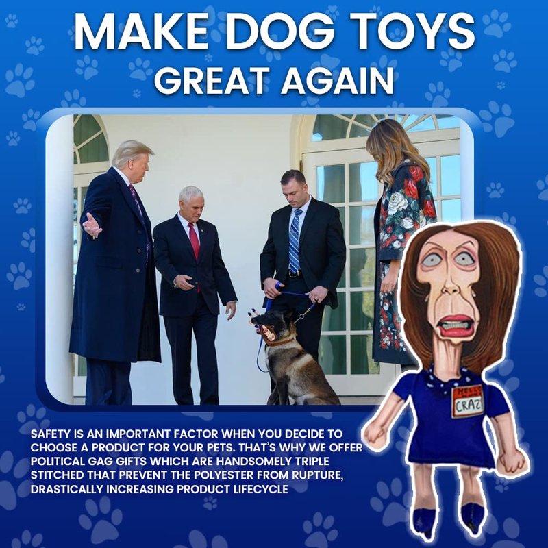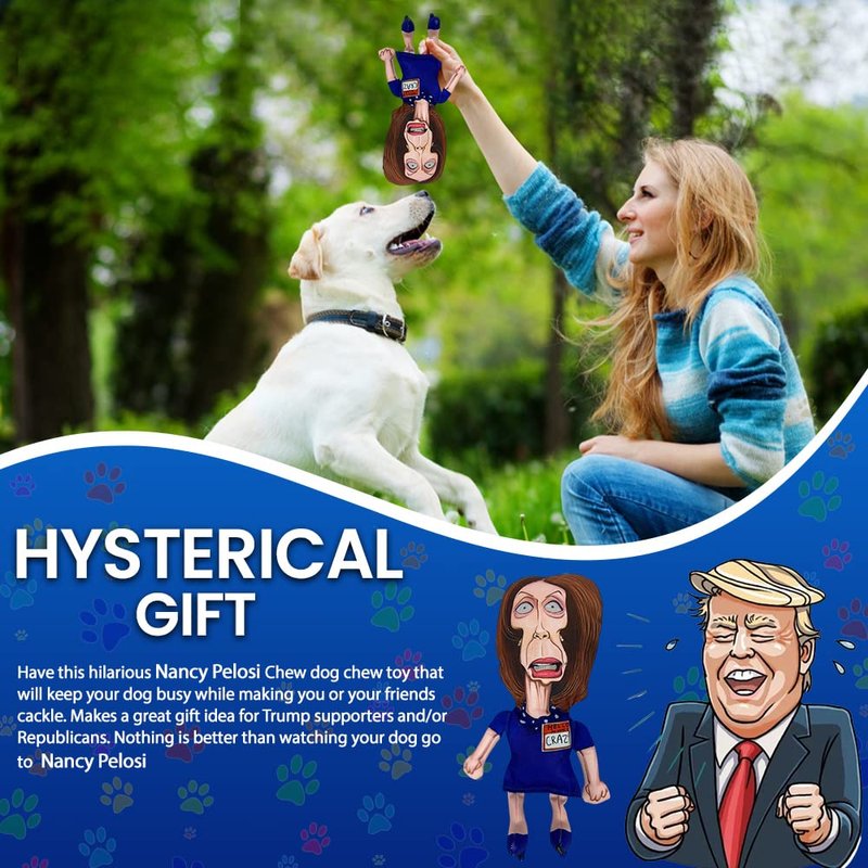- HYSTERICAL GIFT : Have this hilarious Nancy Pelosi dog chew toy that will keep your dog busy while making you or your friends cackle. Makes a great gift idea for Trump supporters and/or Republicans