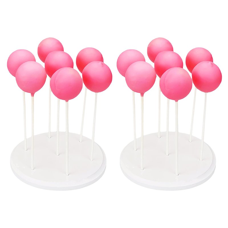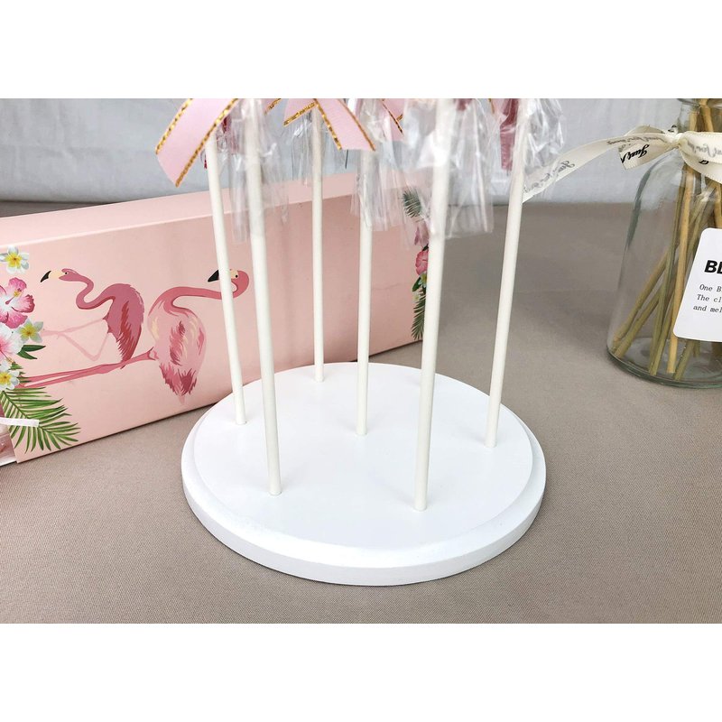 This 2 pack 7-hole small cake pop stand is made of high-quality pinewood, with a little edge detail to dress it up.In white painting, it's very beautiful to serve your cake pops or lollipops.Compared with its counterparts, the acrylic is fragile, cardboard and foam block is not durable, this wood cake pop holder would be a smart choice for longevity. This cake pop display stand is very sturdy and durable, it will not break even if fell off from the dessert table, you can use it over and over.Arrives Ready-to-Use ( No Assembly Required ), made of hardwood, comes with white painting, makes it a lovely decoration for parties like Wedding, Birthday, Baby shower, Halloween, Thanksgiving, Anniversary, etc.You can also use it for retail displays for your cake pops or candies. And it's also great to be a drying rack when you do the baking.The 5/32" (4mm) holes are perfectly fit standard cake pop sticks and lollipop sticks. Actually, you can use it to hold anything with sticks, like candies, cotton candies.Hole spacing on each row is 2", it's the right distance to keep the cake pop stand compact and pops will not hit each other.