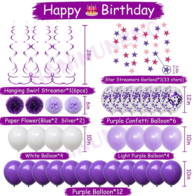 - ►WARM TIPS◄: The gradient colors star garland streamers consist of 33 stars (purple, hot pink, pink), approximate 13 feet long, you can cut to 2-4 parts according to your needs; the twinkling hanging swirls set includes 6 double helix streamers, each about 28 inches; glitter effect confetti balloons need to be rubbed with your hair after inflated, all of which are easy to assemble