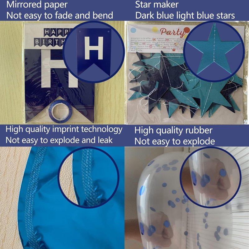 - ►WHAT THIS KIT INCLUDES: This sweet 17th happy birthday party décor package includes ‘HAPPY BIRTHDAY’ banner*1 set, royal blue number 17 foil balloons*2, star streamers garland*1, blue hanging swirls*1 set, paper flowers (silver*2, blue*2), navy blue latex balloons *14, confetti balloons*12, which will meet all your needs