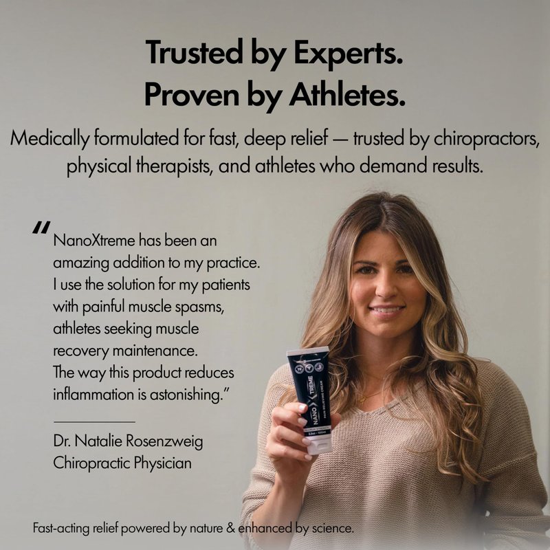 NanoXtreme Pain Relief Cream combines the power of science and nature to deliver fast-acting, deep-absorbing relief you can feel. Designed to target everyday discomfort, this advanced topical formula uses cutting-edge nanotechnology to penetrate deeper than traditional creams — reaching the muscle, joint, tendon, and nerve layers beneath the skin’s surface. Each application provides a cooling-to-warming sensation, a sign that the ingredients are actively working. NanoXtreme is made with 19 high-quality natural ingredients — each selected for a specific purpose. Arnica helps reduce swelling, Menthol delivers a soothing coolness, and Capsicum supports circulation and helps block pain signals. Together, these ingredients work synergistically to deliver long-lasting comfort for sore muscles, stiff joints, and post-activity tension. This maximum-strength topical is trusted by chiropractors, physical therapists, fitness professionals, and athletes. Whether you’re managing daily aches, recovering from a workout, or addressing job-related strain, NanoXtreme is designed to support your body when it needs it most. Proudly made in the USA, NanoXtreme is manufactured in FDA-registered facilities and independently tested for quality, purity, and safety. Available in both a 3.3 oz airless pump and a 3.3 oz squeeze tube — both TSA-compliant and easy to take on the go — it’s ideal for your home, gym bag, or travel kit. Backed by science. Trusted by experts. Formulated with ingredients you can count on.