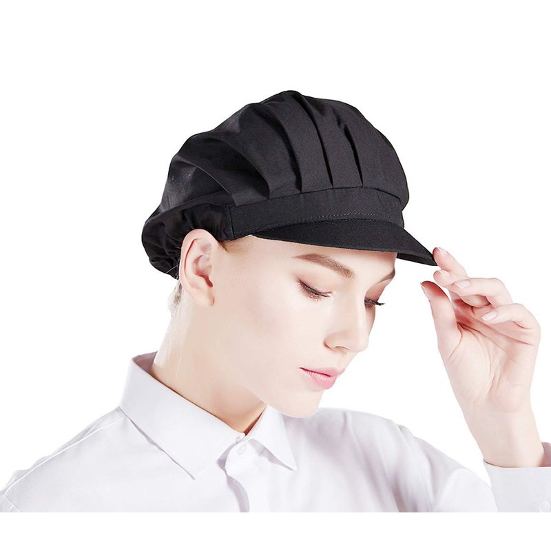 Nanxson 3pcs Unisex Chef Hat Elastic Chef Cap Kitchen Baking Cooking Hat for Men Women with Brim CF9035 Black