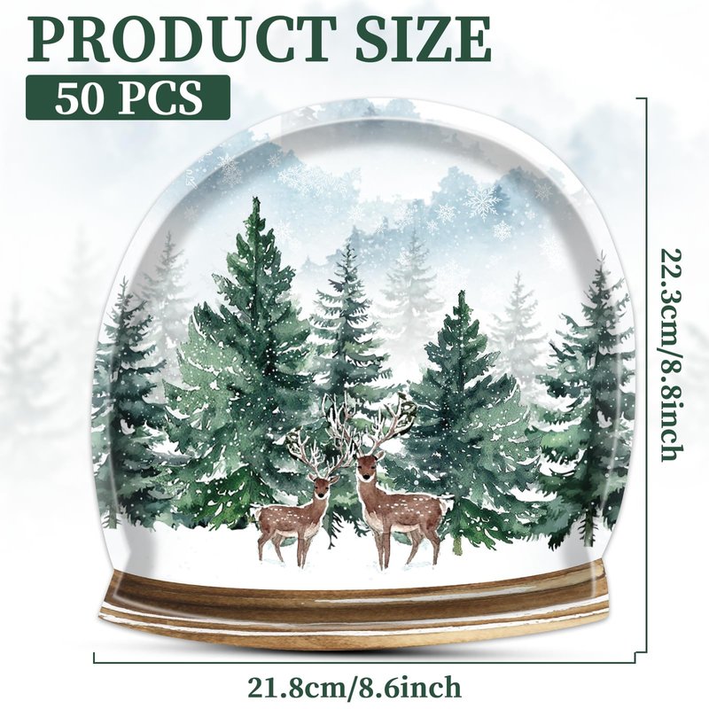 Naozinebi 50Pcs Winter Party Plates Winter Forest Tableware Set Party Decorations Christmas Tree Elk Disposable Paper Dessert Plates Crystal Ball Shaped Dinnerware for Xmas Holiday Party Supplies