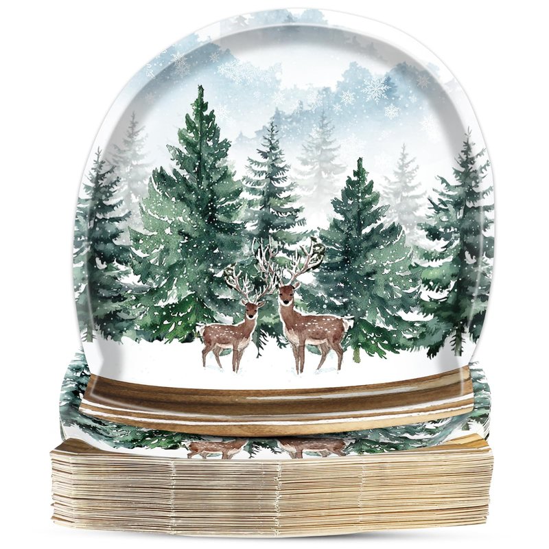 - Eye-catching design: These winter-themed paper plates are designed in the shape of a crystal ball, featuring a captivating winter forest scene with trees, elk, and delicate snowflakes, bringing a magical winter wonderland ambiance to your table. Ideal for holiday dinners, Christmas gatherings, or any winter event, these plates enhance your festive decor.