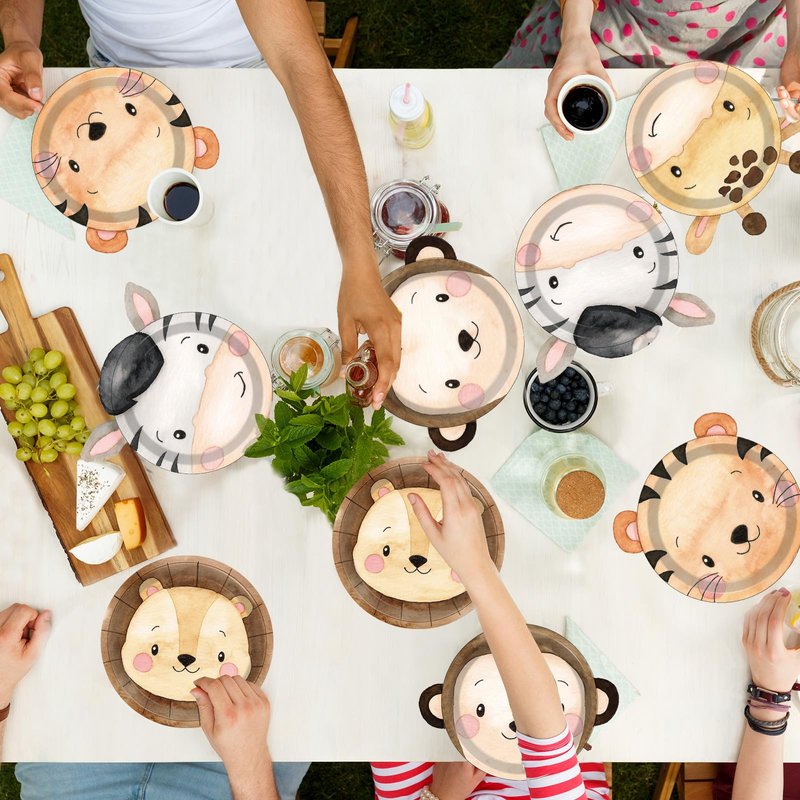 disposable paper reduces clean-up time so you can enjoy more time with friends and family at this safari animals themed party.