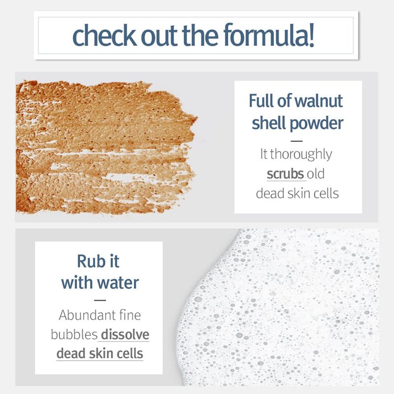 - 🌳 EFFECTIVELY DOUBLE SCRUB WITH NATURAL INGREDIENTS - Walnut Shell Powder has many minutes' pores on its surface therefore it's unique formula smoothly removes the impurities on the skin's surface. Sodium Chloride and Lactic Acid gently melt the dead skin cells, leaving the skin feeling soft without any irritating and stinging feeling.