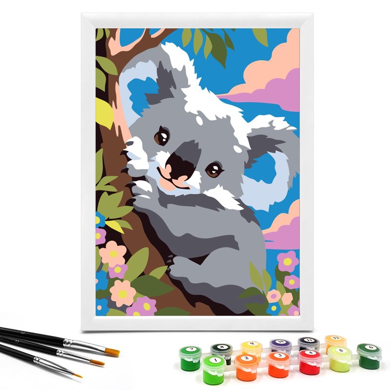 Nariolar Paint by Numbers for Kids Ages 4-8 with 7X9.5 inch Pre-Printed Cardboard,12 Acrylic Paint Pots and 3 Painting Brushes, Craft Gift Room Decor for Children,(Adorable Koala)