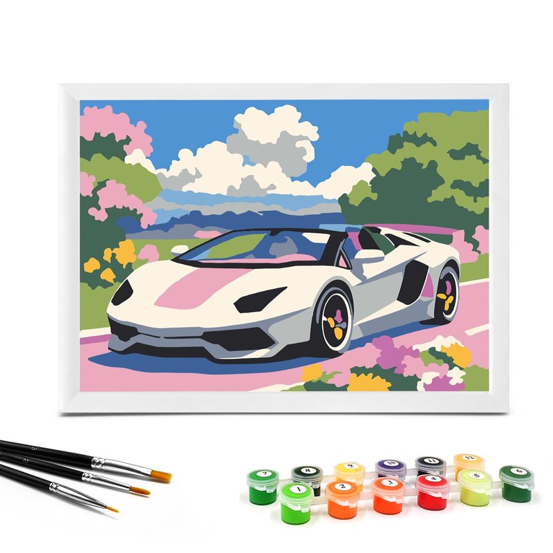 Nariolar Paint by Numbers for Kids Ages 4-8 with 7X9.5 inch Pre-Printed Cardboard,12 Acrylic Paint Pots and 3 Painting Brushes, Craft Gift Room Decor for Children,(White Car)