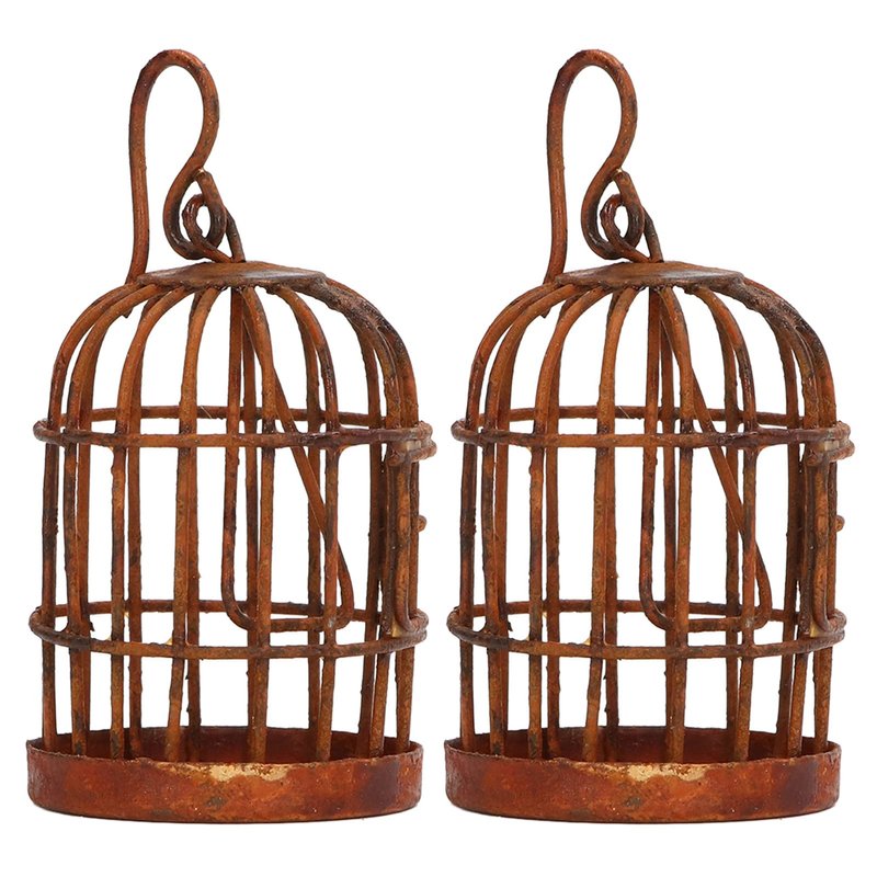Naroote Dollhouse Miniature Bird Cage 2pcs Dollhouse Rusty Iron Bird Cage Finely Detailed for 1/12 Scale Dollhouse