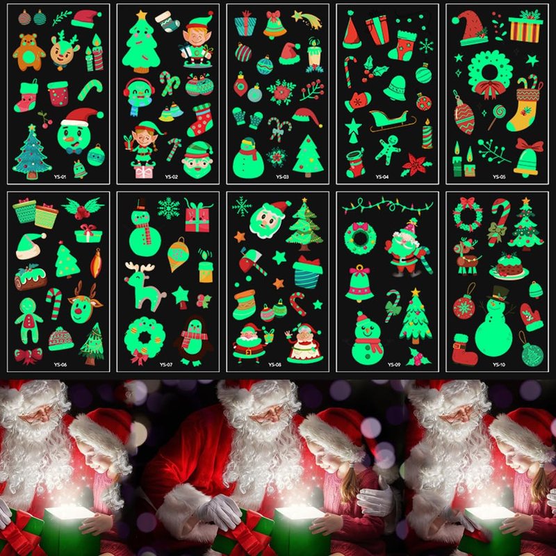 NASAMA 20 Sheets Luminous Christmas Temporary Tattoos for Kids,Christmas theme Party Holiday Waterproof Tattoo Stickers Toys for Boys and Girls (Mixed color 1/20 Sheets)
