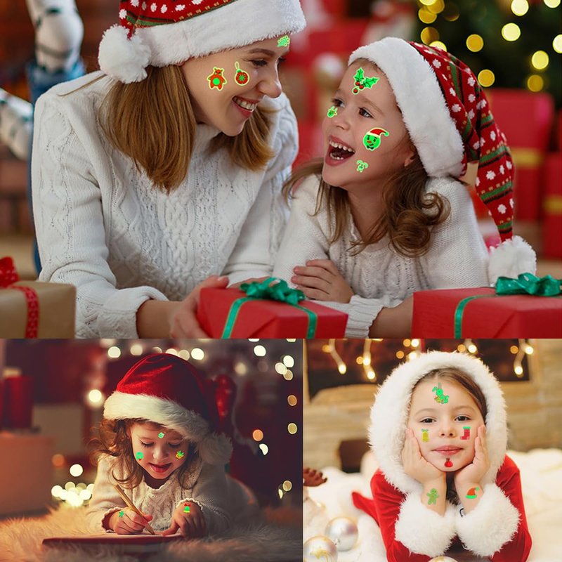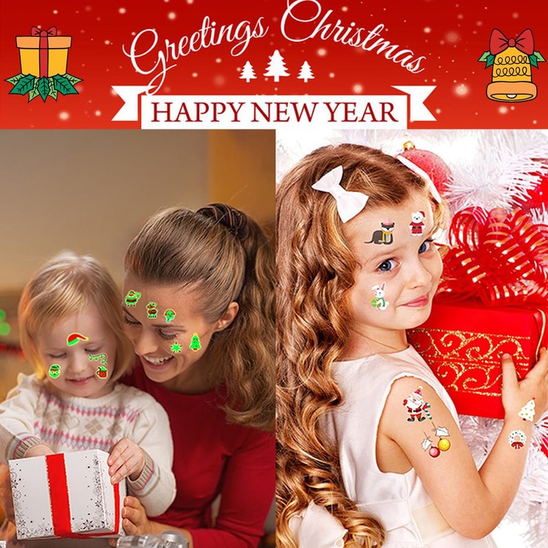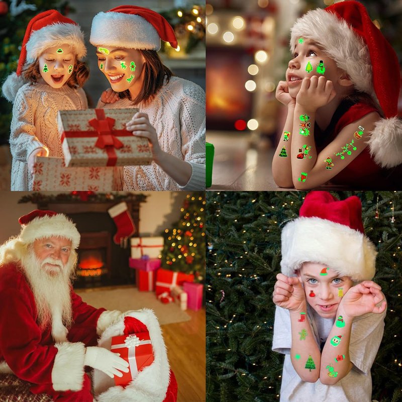 - 🎁 A suit includes 20 sheets (about two hundred)Christmas theme luminous temporary tattoos, Each tattoo sheet measured about 2.7 x 4.7 inches/6.8x 12cm