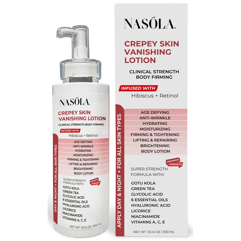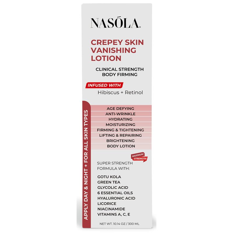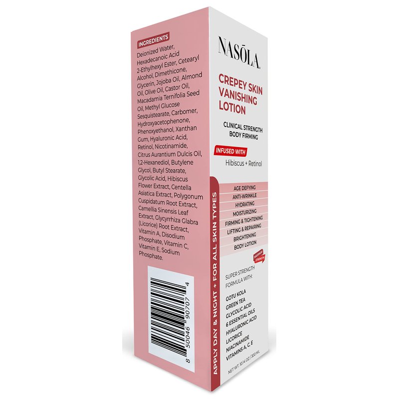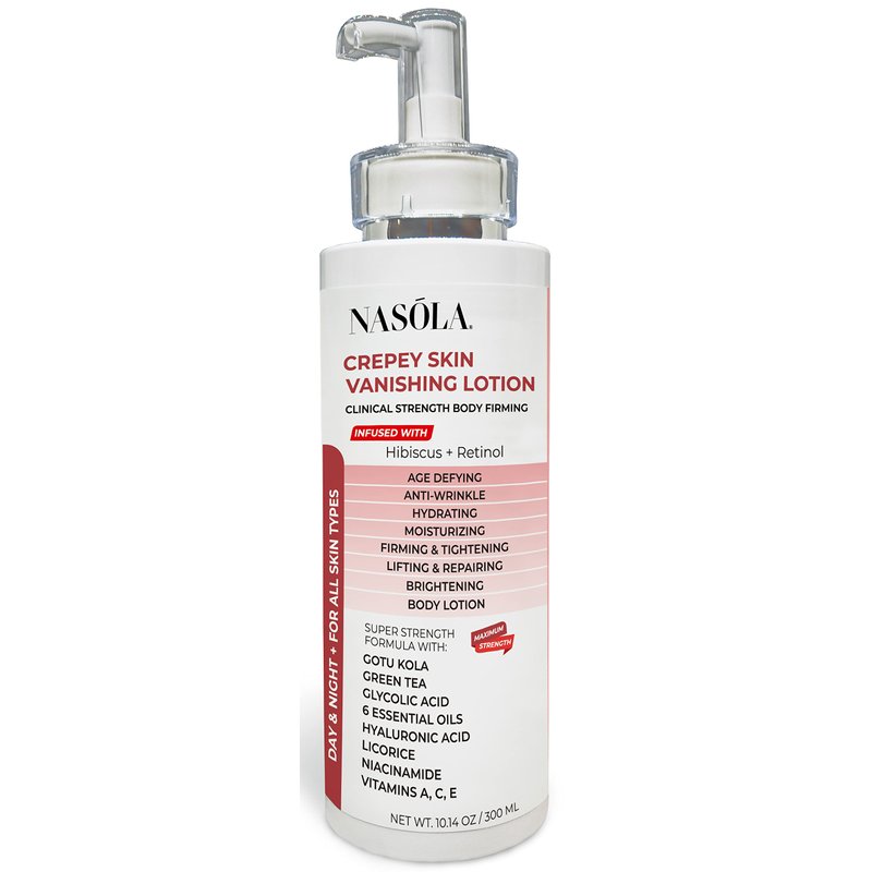 Nasola Crepe Erase Advanced Body Repair Treatment Lotion with Retinol and Hibiscus, Skin Tightening and Lifting Cream Moisturizer for Dry Aging Skin includes Vitamin A, E, C, and Green Tea, 10.14 Oz
