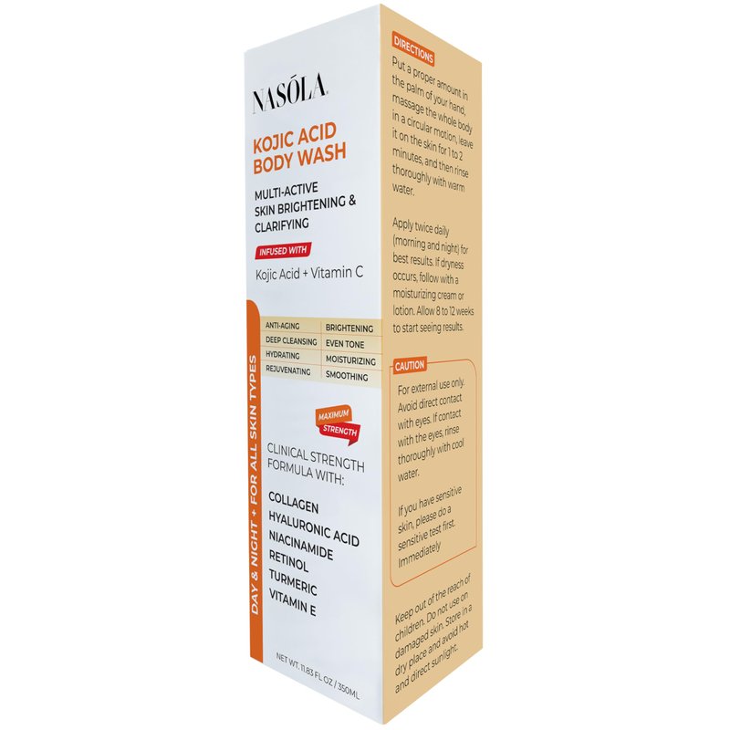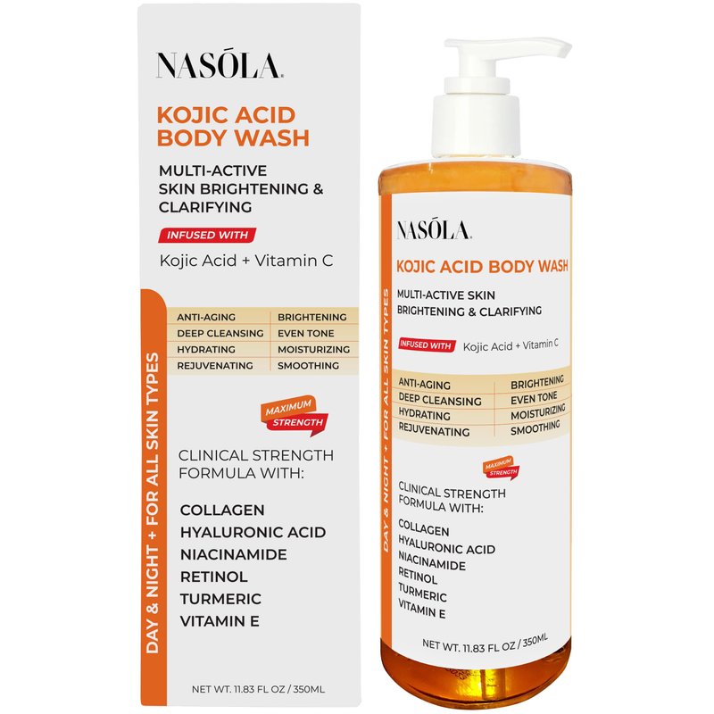 - Rejuvenating, Exfoliating, and Nourishing: Dive into the deep cleansing prowess of Nasola Kojic Acid Body Body Wash. Enriched with Hyaluronic Acid, Vitamin E, Niacinamide, and Collagen, it penetrates and revitalizes, promising a youthful, radiant appearance.