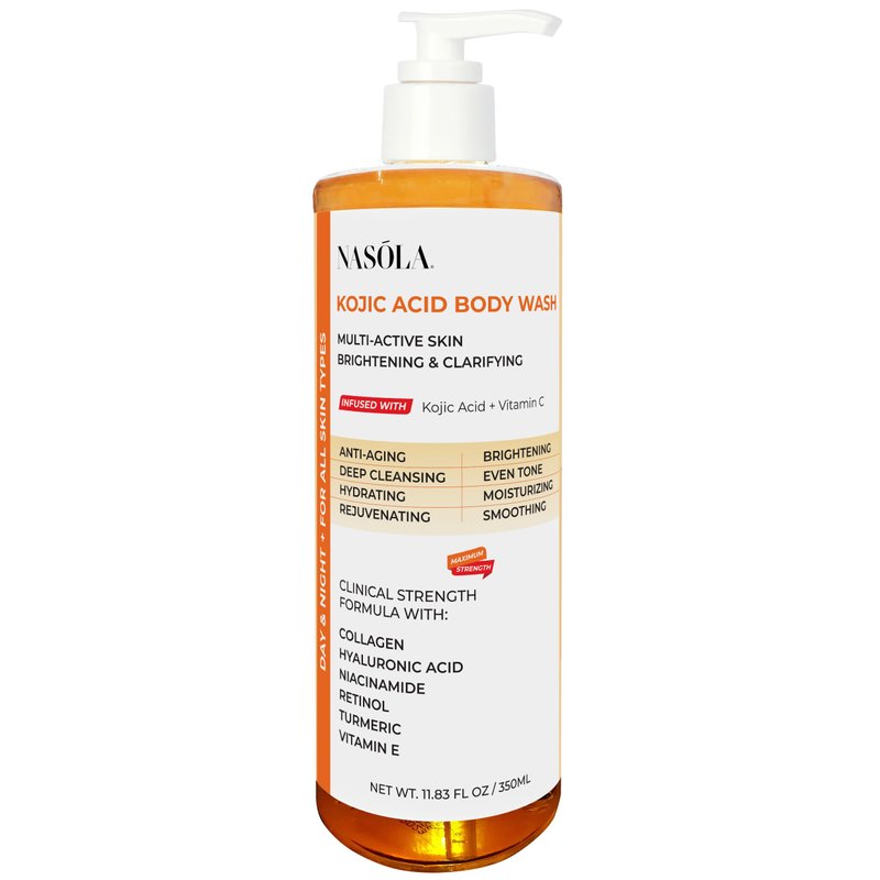 - Whole Body Skin Clarifying: Harnessing the potency of the Original Japanese Kojic Acid Complex, Nasola Kojic Acid Body Wash is tailored to diminish skin discoloration, sun-induced marks, blemishes, and other complexion inconsistencies, revealing a radiant and luminous glow. Specifically designed for the whole body, expect a transformative refining experience.