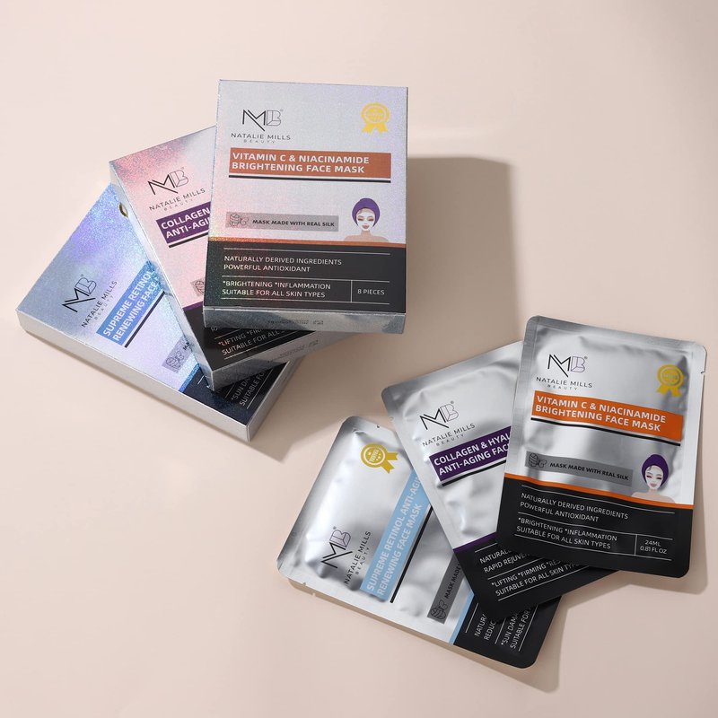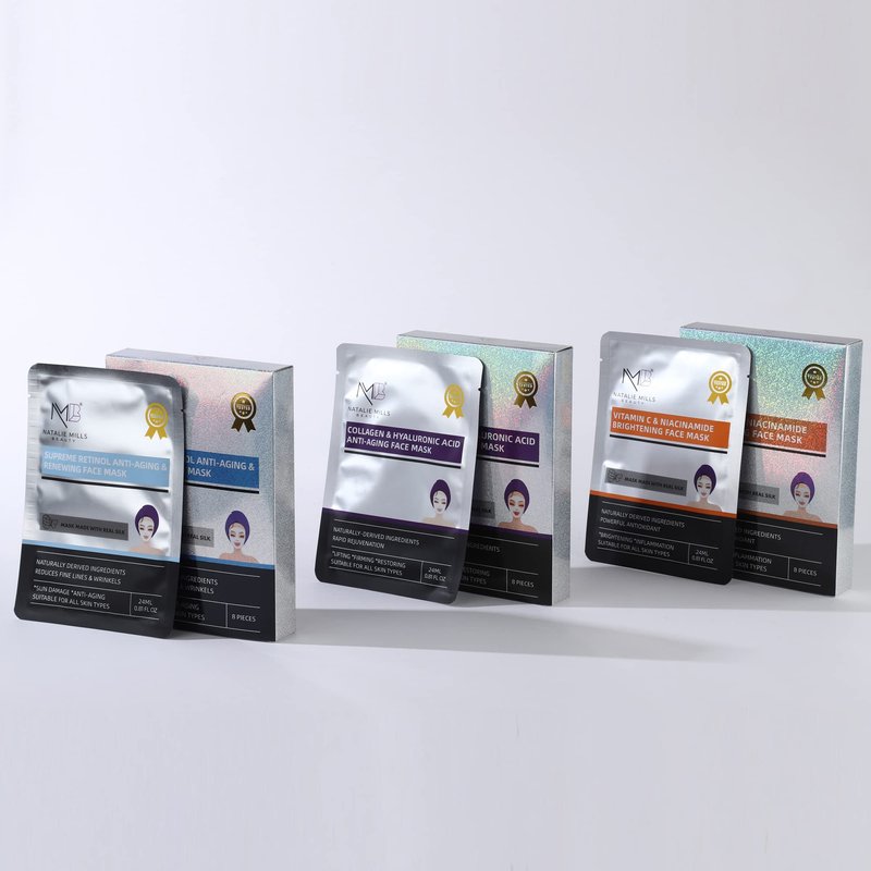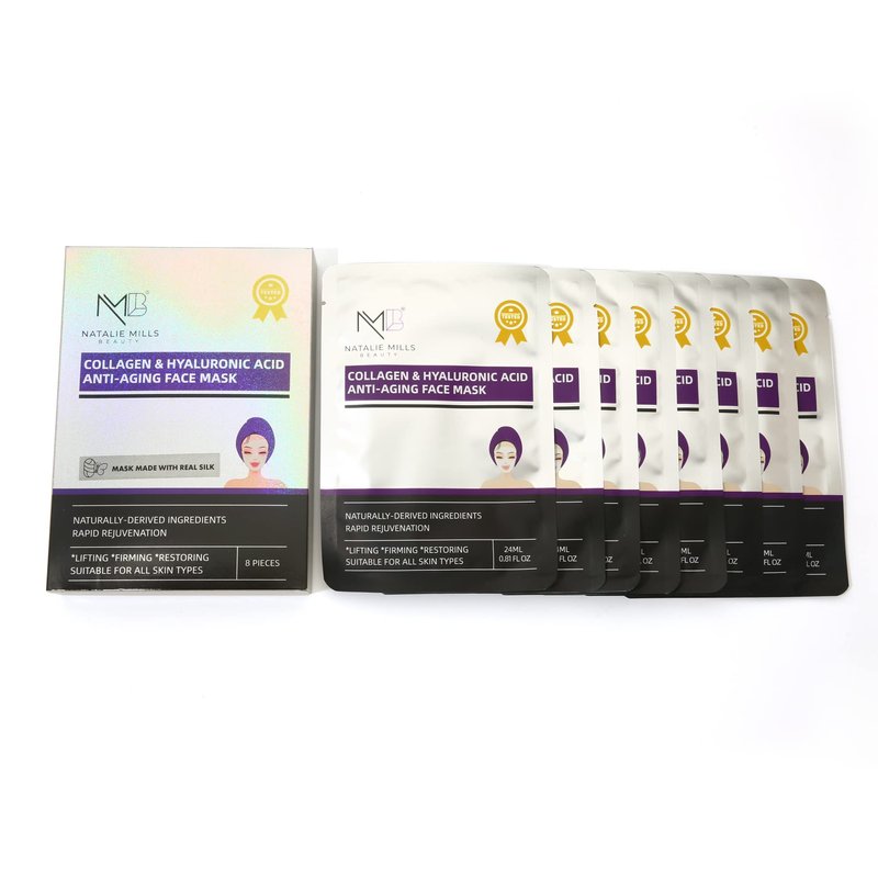 Natalie Mills Collagen & Hyaluronic Acid Anti-Aging SILK Face Mask - 8pcs