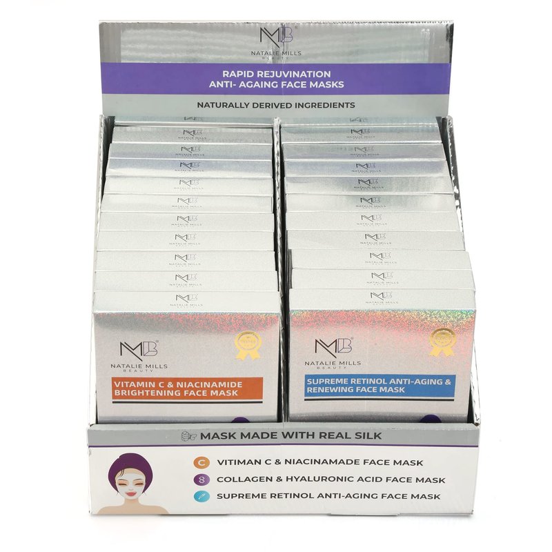 Natalie Mills was born in Johannesburg, South Africa to very humble beginnings. From the age of 8, Natalie was known as the “Bling Fashionista” and make-up enthusiast. In 2012 she started her global brand with just $100 in her home country, the brand gained global demand and is now headquartered in Dallas, Texas. The brand is worn by major A List celebrities, featured in national press and generates viral content with top trending products amongst influencers and on all social media platforms. The Natalie Mills Beauty range is a premium collection of new and innovative anti-aging products. A strong core of this range is our brand new formulized full face sheet masks, made with Real Silk as well as our hydrogel masks for area targeting. We have partnered with top dermatologists globally to bring you the most powerful and “RESULT DRIVEN” ingredients to fight all skin needs. Our range includes ingredients with Collagen, Hyaluronic Acid, Retinol, Vitamin C, Niacinamide etc and our Professional Home Spa Collection brings salon results to your home! The Natalie Mills Beauty collection was strategically designed with stylish, high-end packaging and display points to make it Boutique Ready! It’s the perfect eye-catching display point to fit on any counter, in any type of store with a seamless transition no matter what you sell. The display points were creatively designed with a metallic finish to emit the statement of the brand and draw attention. The collection allows clothing boutiques and other non-beauty classified stores to tap into the fast-growing beauty market.