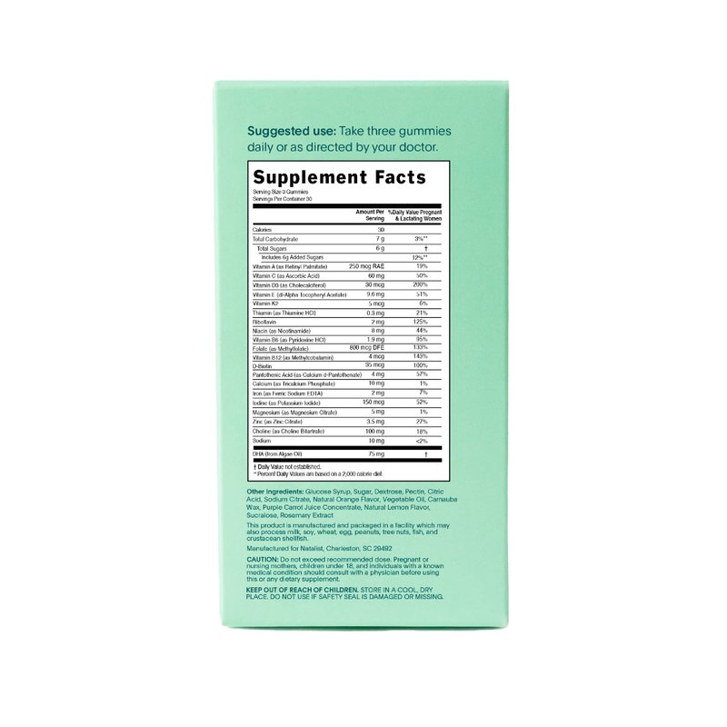 NATALIST Prenatal Gummies for Her Daily Preconception & Pregnancy Formula Women's Multivitamins + DHA Omega-3 from Algae - Mixed Berry, Vegetarian, Gluten-Free, Non-GMO - 90 Count