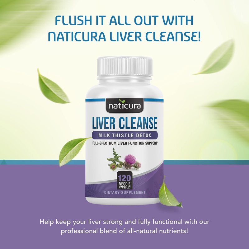 Naticura Liver Cleanse Plant-Based Formula - Vegan Full-Spectrum Supplement with Milk Thistle, Vitamin C and Zinc for Liver Function and Immune Support - 120 Capsules - No Fillers or GMO