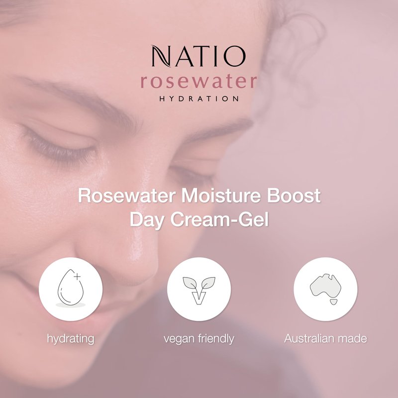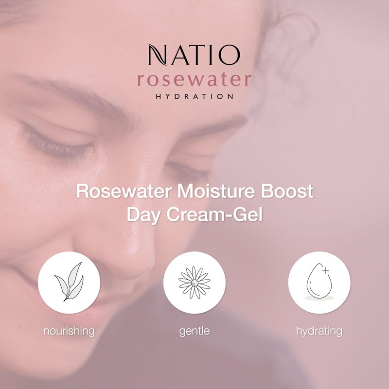 Natio Rosewater Moisture Boost Day Cream-Gel, 2.5 oz - Face Cream with Shea Butter - Face Lotion with Rosewater - Face Moisturizer for All Skin Types