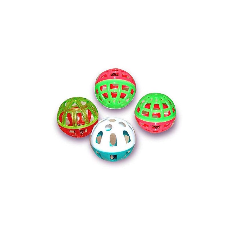 Made of colorful plastic with a metal jingle bell inside, these playful animal toys will keep your cat entertained and exercised at the same time. The balls are designed with a series of cutouts around the outer surface that provide a rattling sound to accompany the tinkling jingle bell inside as kitty pushes it across the floor. The balls measure 1-1/2 inches in diameter. They can also be placed in soft toy and art creations to add a soft jingling sound. This offer is for a package of 30 new and colorful jingle ball toys.
