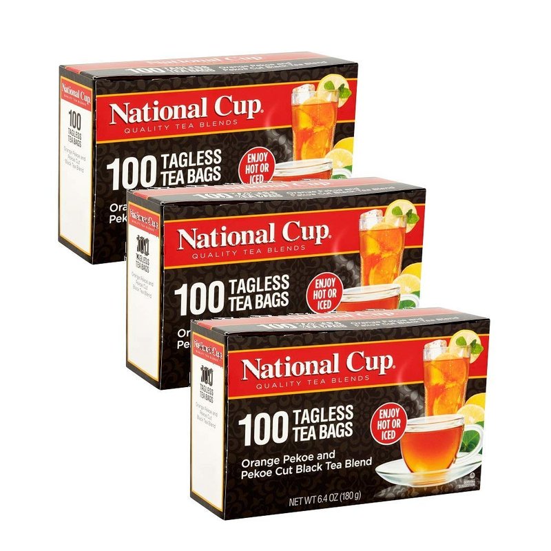 National Cup, Tagless Orange Pekoe and Pekoe Cut Black Tea Blend, Tea Bags, 100 Ct, Pack of 3