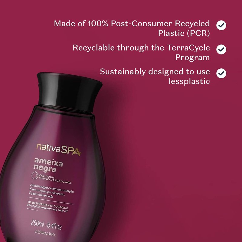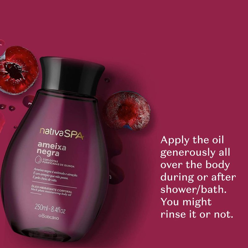 Nativa SPA by O Boticário, Black Plum Body Oil, Enriched with Purified Quinoa Drops to Boost Hydration, 6.8 Ounce