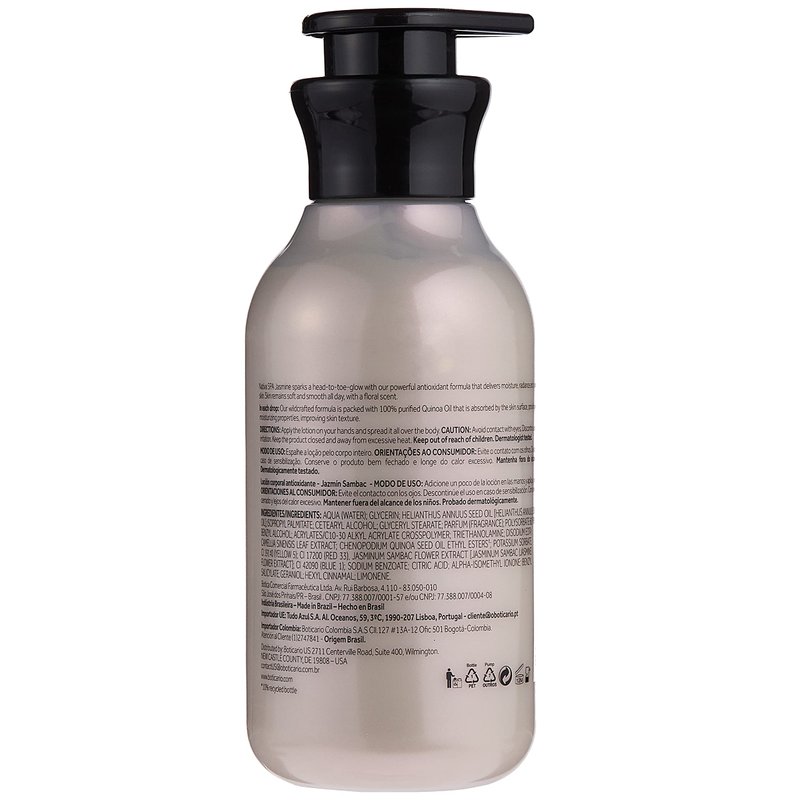 - JASMIN SAMBAC BODY LOTION: Our newest body lotion reduces damage caused by stress on the skin. Its formula nourishes and reinvigorates fighting the oxidative process, mixing pure Quinoa oil drops to boost hydration and prevent loss of skin elasticity with the Jasmine Sambac extract