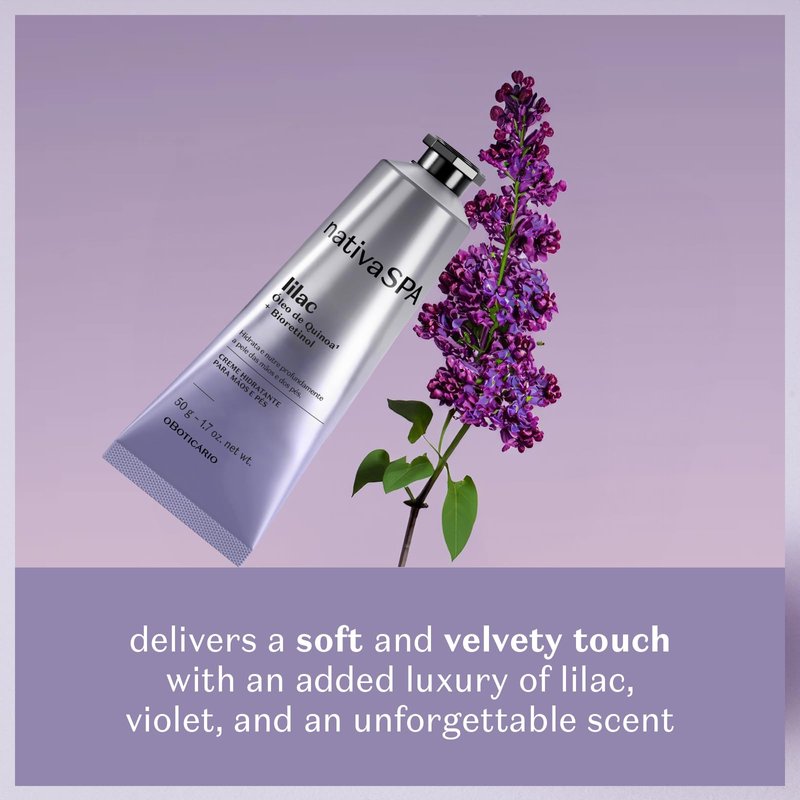Nativa SPA by O Boticário, Lilac Hand Cream, Hydrating Quinoa Oil & BioRetinol Lotion with the Essence of Lilac Flowers, 1.7 Ounce