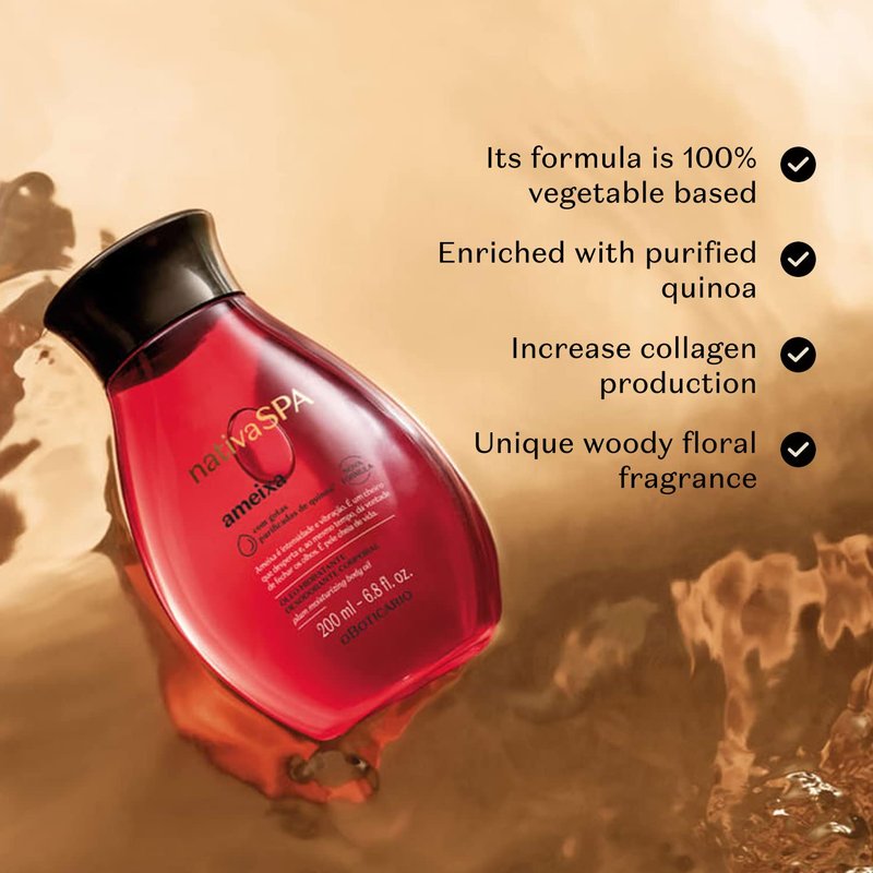 Nativa SPA by O Boticario Plum Body Oil, Enriched with Purified Quinoa Drops to Boost Hydration, 6.8 Ounce